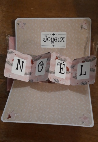 À l’ouverture, un bandeau de 4 cases se déploie en pop-up, entouré de découpes d'étoiles fêtant un Joyeux Noël.