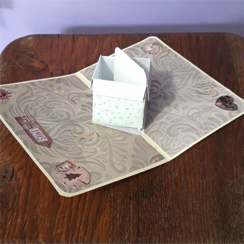 Celle-ci a un système de cadeau central qui s'ouvre et se ferme. Idéal pour offrir un billet et/ou message autrement que dans une simple enveloppe.