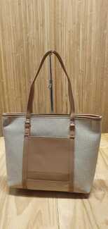Sac en synthétique souple, imitation lin et garniture de couleur beige.