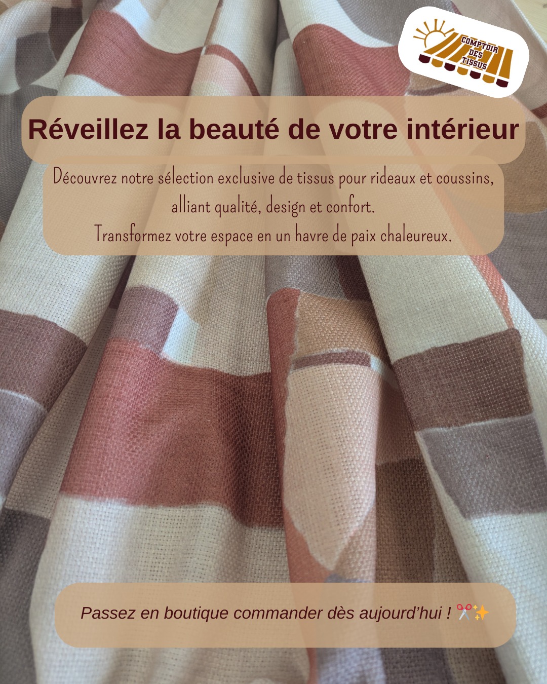 ![]() | Offrez à votre maison la douceur et l’élégance qu’elle mérite grâce à notre sélection exclusive de tissus pour rideaux et coussins.