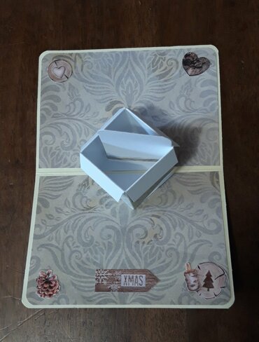 Celle-ci a un système de cadeau central qui s'ouvre et se ferme. Idéal pour offrir un billet et/ou message autrement que dans une simple enveloppe.